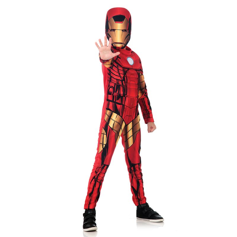 Entre para os Vingadores com nossa fantasia infantil do Homem de Ferro. Com tecido macio, este macacão apresenta um peito musculoso acolchoado e uma armadura super detalhada. O gerador de campo magnético impresso no peito parece realmente brilhar! Acompanha máscara para completar o look, seu filho está pronto para voar ao resgate!