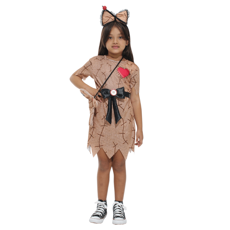 Ideal para festas à fantasia e brincadeiras criativas, a fantasia de boneca voodoo infantil une conforto com estilo assustador na medida certa. O design exclusivo com detalhes costurados e coração remendado desperta a imaginação. A tiara com alfinete cenográfico e a bolsa temática completam o visual com charme e originalidade.
