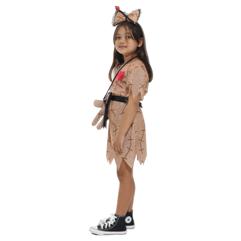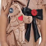 A fantasia infantil de boneca voodoo é perfeita para festas de Halloween, apresentações escolares e eventos temáticos. Com estampa imitando tecido de boneca costurada, coração remendado e acessórios únicos, é uma opção criativa e divertida para crianças que adoram fantasias diferentes.