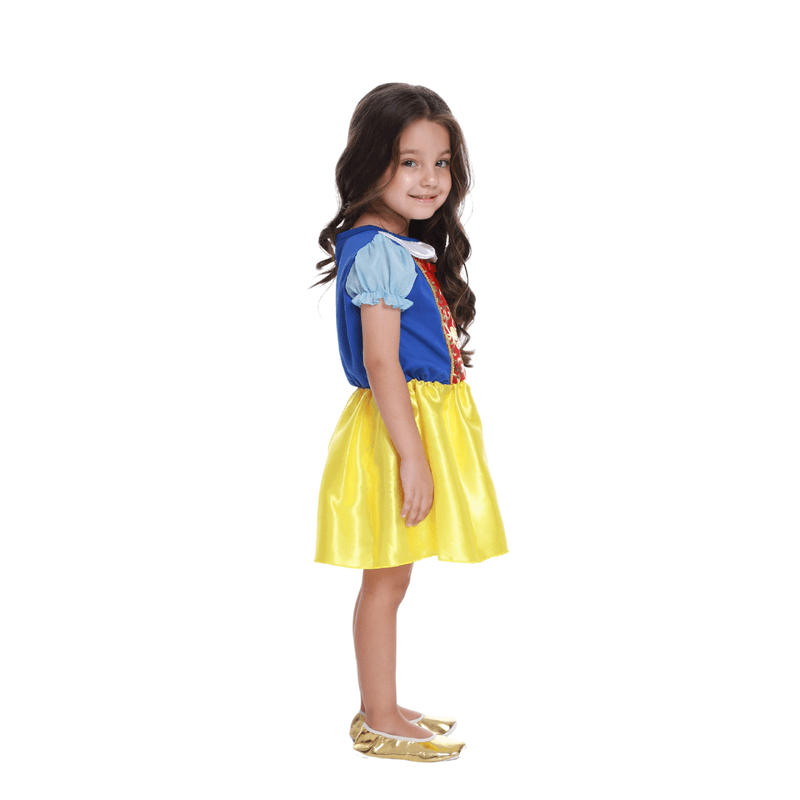Essa fantasia é inspirada na princesa clássica de cabelos negros e vestido colorido. Composta por materiais leves e confortáveis, proporciona liberdade para brincar e se movimentar com elegância. A gola branca e os detalhes em vermelho reforçam o visual encantador. Ideal para festas de aniversário, apresentações, fotos temáticas e carnaval.
