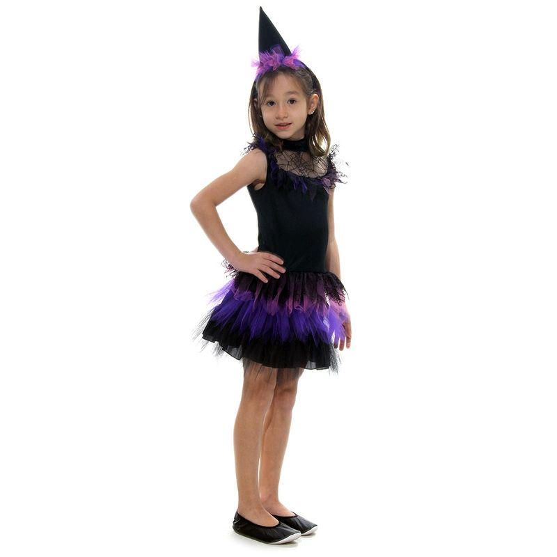 Fantasia Bruxa Aranha Vestido Infantil com Chapéu - Halloween