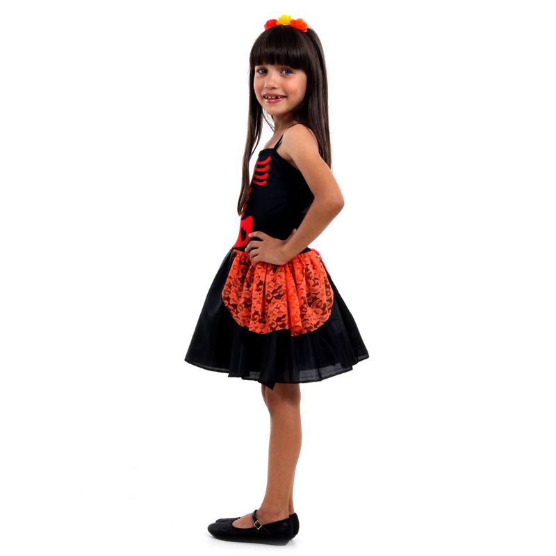 Fantasia Vestido Esqueleto Mexicana Infantil - Dia das Bruxas