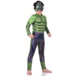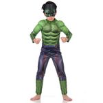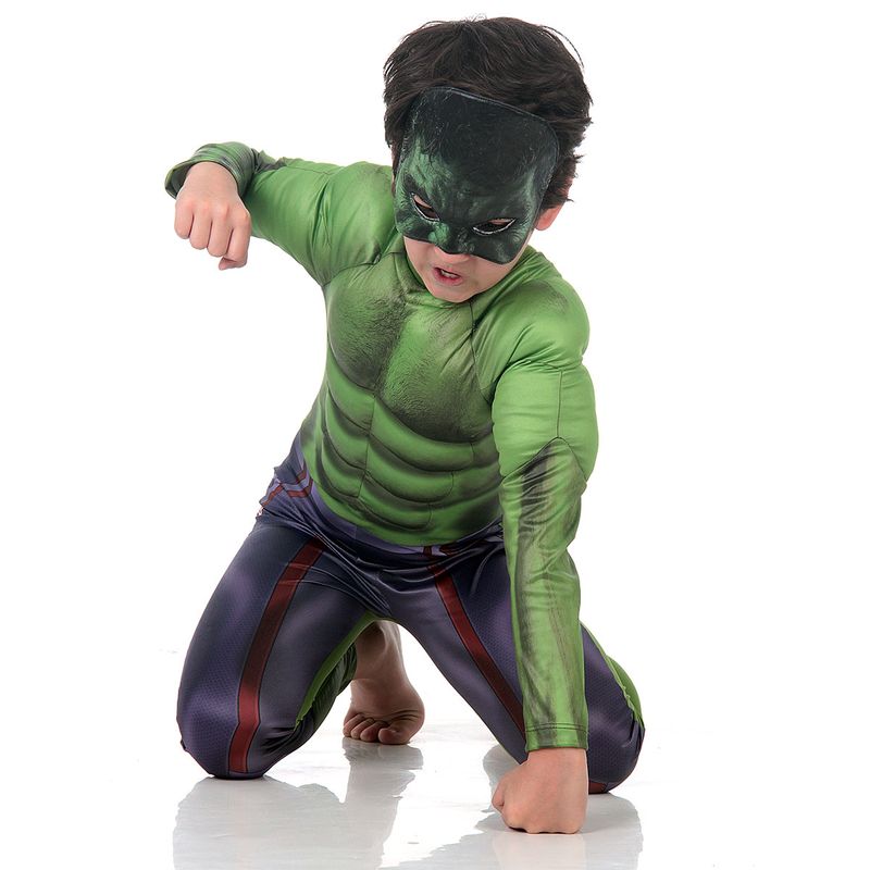 Transforme seu filho no super-herói verde gigante com esta fantasia infantil do Hulk, do filme Vingadores! Feito de tecido macio e brilhante, o macacão apresenta enchimento para efeito de músculos nos braços e no tronco, estampa das icônicas calças roxas do Hulk e fecho de zíper nas costas. Acompanha máscara de tecido estampado e complete o look esmagador!