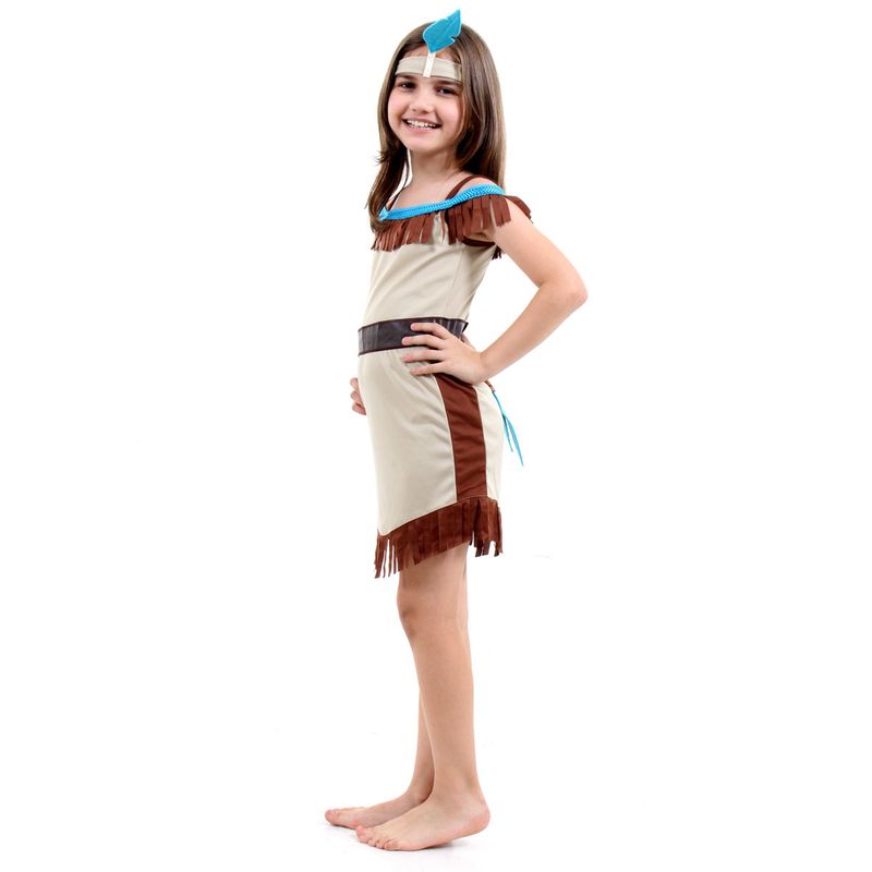 InfantilCarnavalFantasia Infantil Índia Pocahontas Americana Vestido Tiara Abrakadabra
