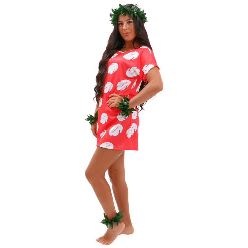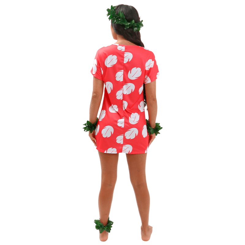 A Fantasia Lilo Adulto é perfeita para quem quer reviver a magia havaiana com muito charme. Com visual inspirado na personagem, ela traz conforto, autenticidade e estilo para festas temáticas, carnaval e apresentações. A estampa de folhas brancas sobre fundo vermelho é uma referência marcante e inconfundível, perfeita para eventos com clima tropical, apresentações ou até mesmo festas à fantasia. Os adornos em folhagem artificial complementam o look, trazendo autenticidade e delicadeza.