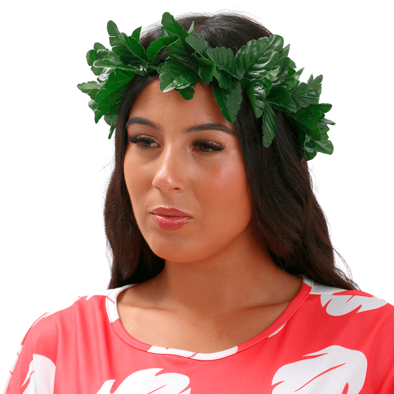 - Acompanha acessórios: coroa, braceletes e tornozeleiras de folhas