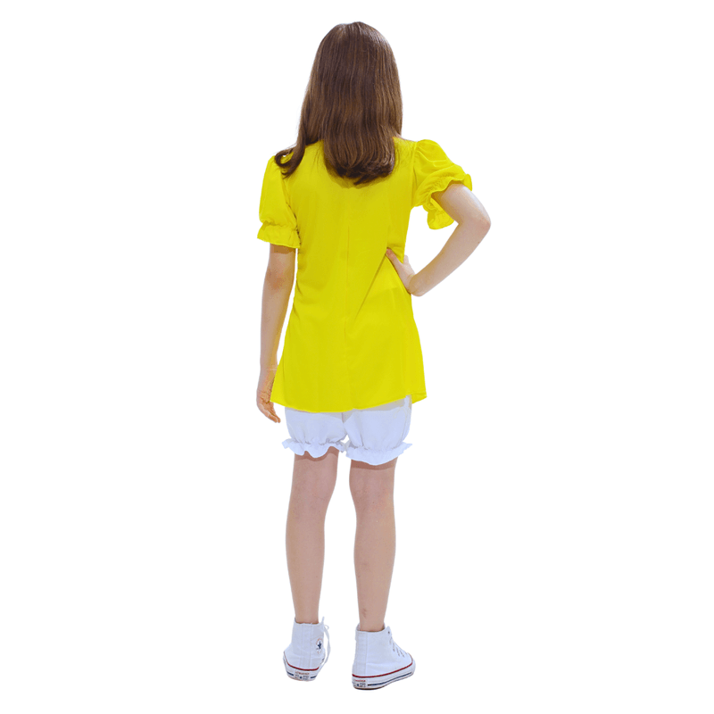 Este conjunto é composto por um vestido amarelo com mangas bufantes e uma charmosa gola redonda, acompanhado por um short branco que completa o look. O vestido é leve e confortável, garantindo liberdade de movimento para as crianças se divertirem sem preocupações. Feito em material de alta qualidade, é fácil de vestir e de secagem rápida, perfeito para acompanhar o ritmo das crianças. Ideal para festas temáticas, eventos escolares ou simplesmente para um dia de brincadeira cheio de imaginação!