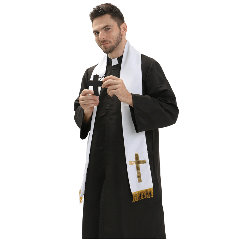 A fantasia de padre adulto é perfeita para quem busca um visual imponente, respeitoso e divertido. Ideal para celebrações religiosas fictícias, esquetes teatrais ou apenas para descontrair em festas. Feita com tecido leve e confortável, permite liberdade de movimento durante o uso.