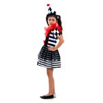 A Fantasia Infantil Palhaça Horror é perfeita para o Halloween ou festas temáticas. Com vestido assimétrico, detalhes em vermelho e estampa em preto e branco, ela traz um visual impactante. Acompanha chapéu pontudo combinando, tornando a fantasia ainda mais completa.