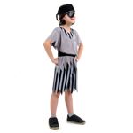 Conjunto completo com camiseta, bermuda, bandana e tapa-olho.
